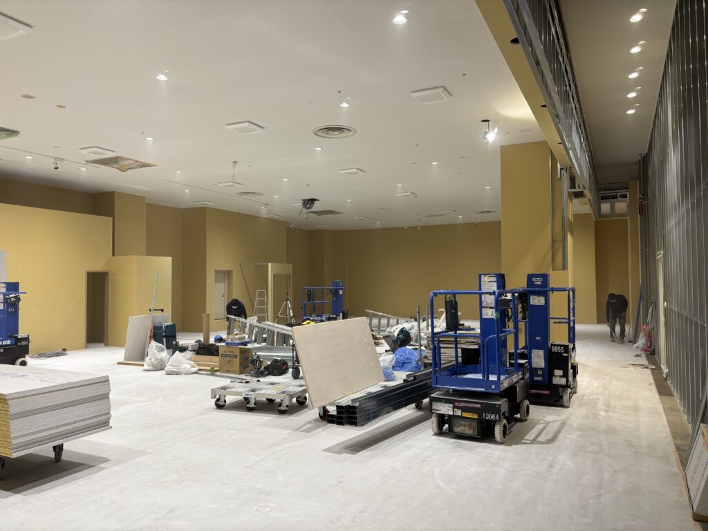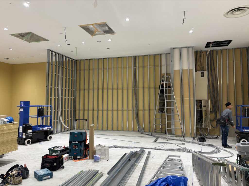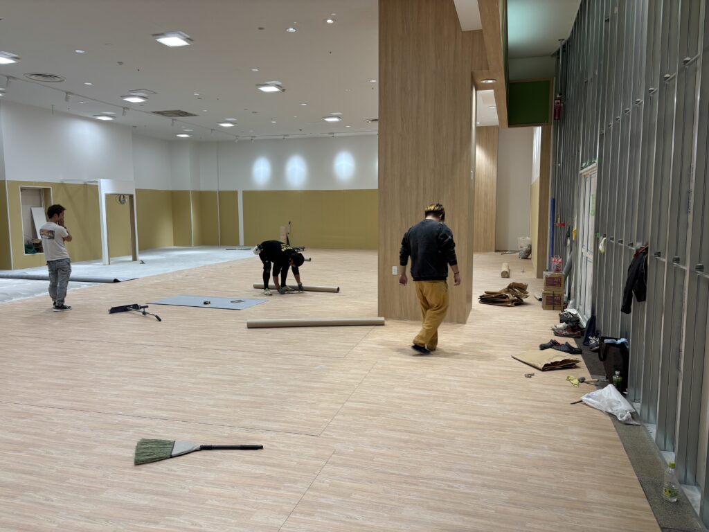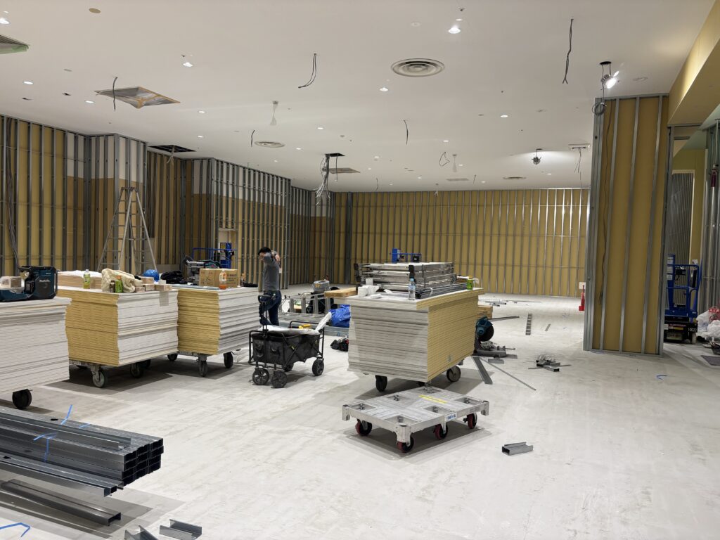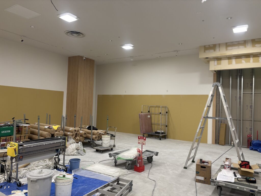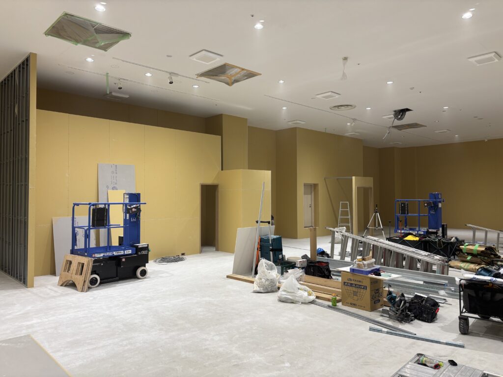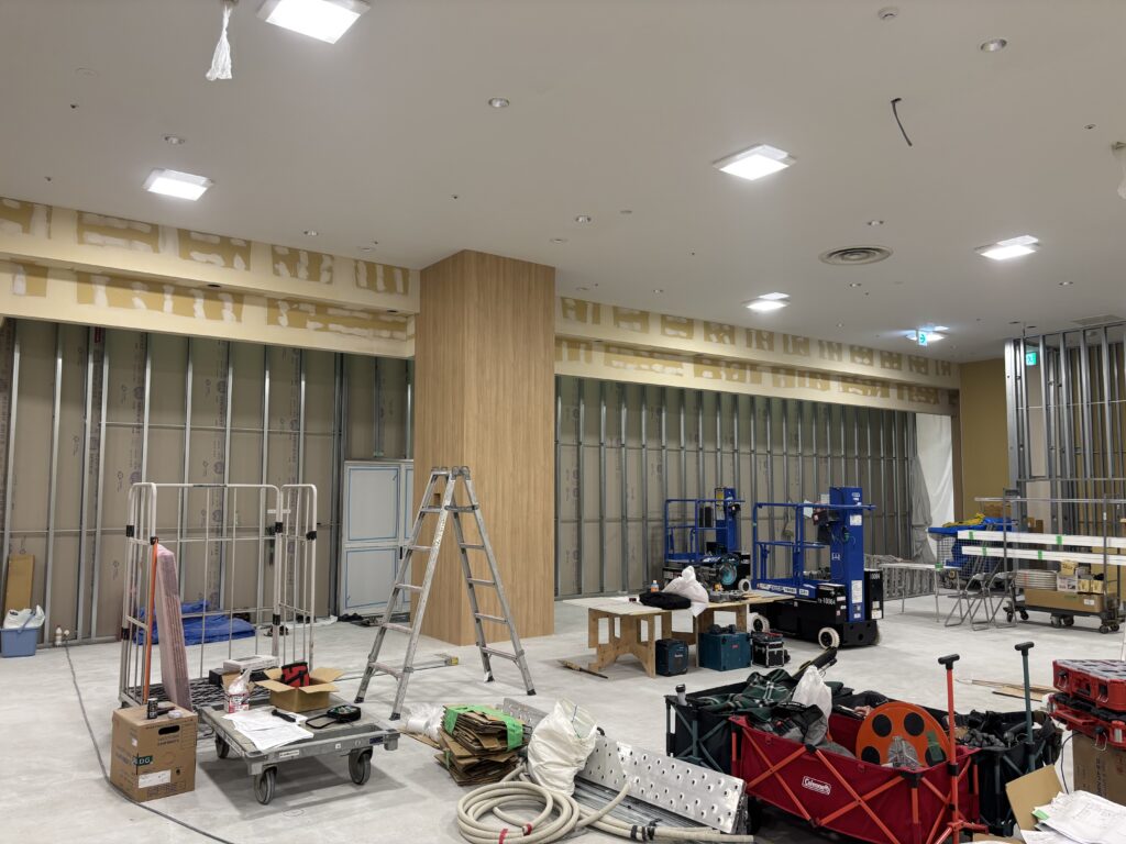 | 施工内容 | 仮囲い工事、LGS工事、PB工事、大工工事、クロス貼り工事、床長尺シート貼り工事 |