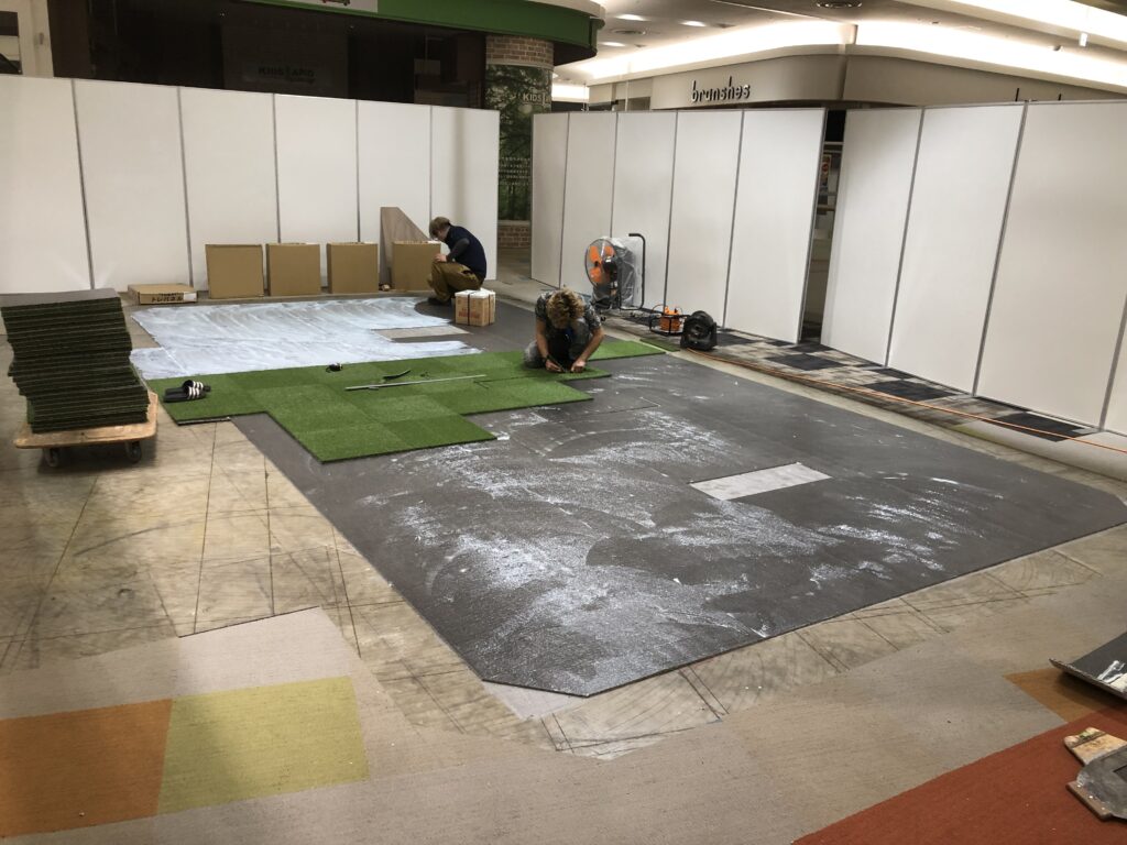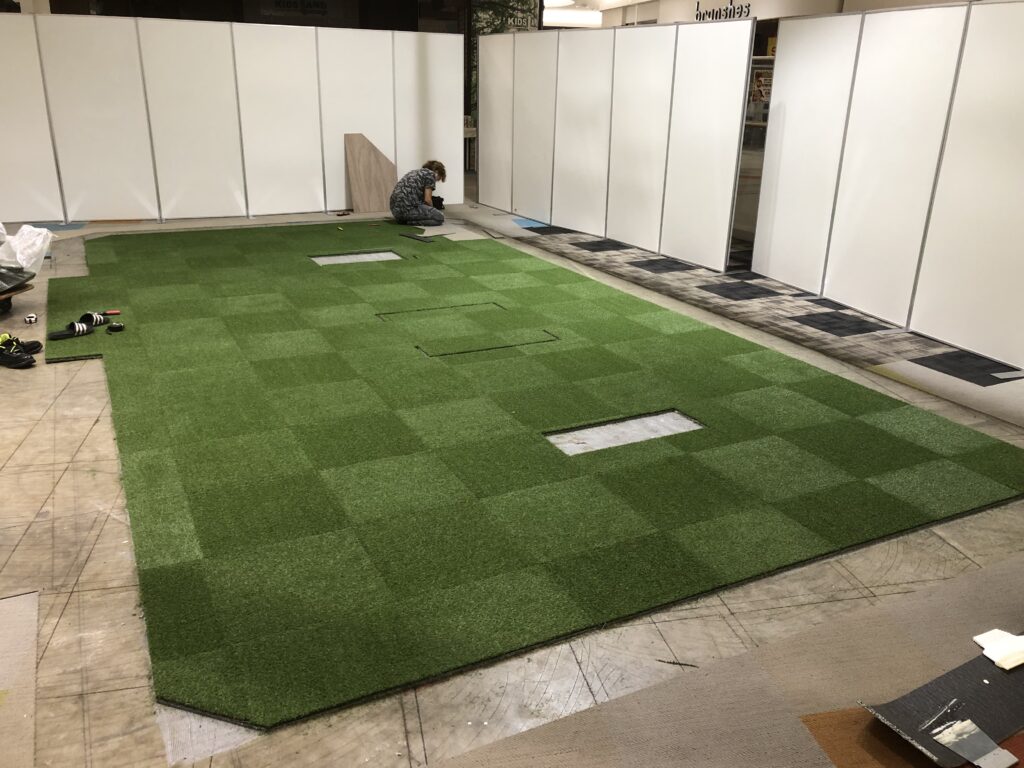 | 施工内容 | 天井吊ボルト設置、床芝生塩ビタイル貼り、家具設置 |