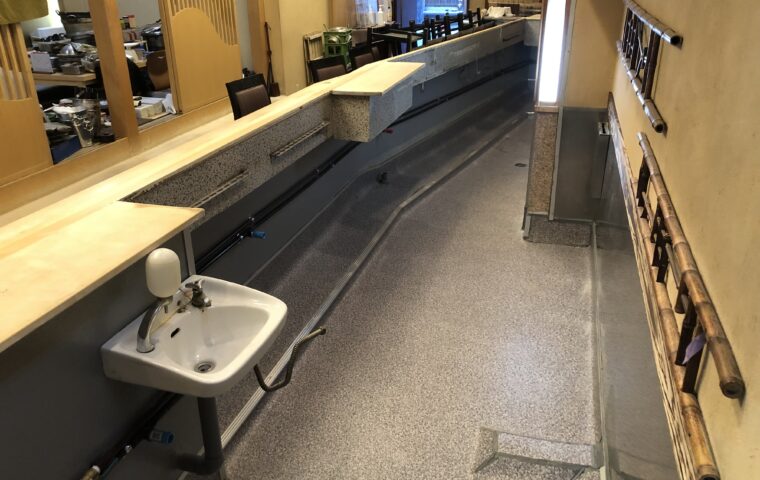 お寿司屋さんの漏水に伴う床防水工事と給水引き直し工事をご依頼頂きました。
